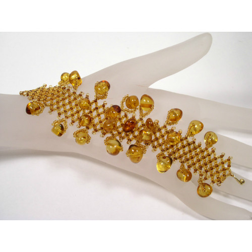 Плетеный браслет из бисера и балтийского янтаря 20023