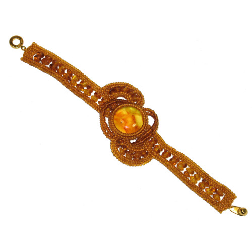 Плетеный браслет из бисера и балтийского янтаря 20759