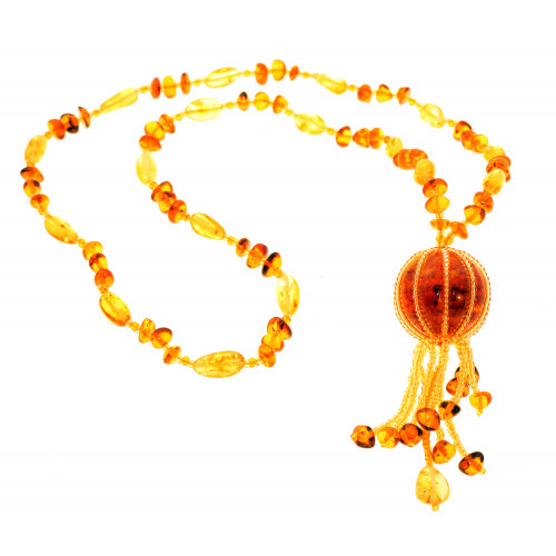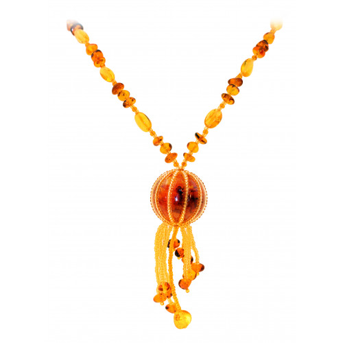 Плетеный кулон из натурального янтаря и бисера 30867-1