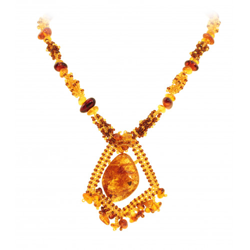 Плетеный кулон из натурального янтаря и бисера 30902