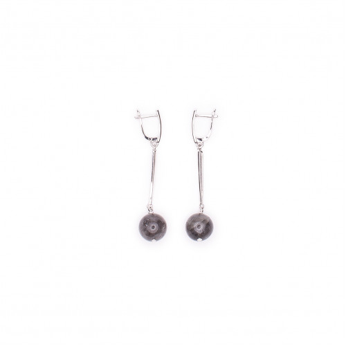 Серьги с натуральным лабрадором. Посеребрение. Длина серег 5.8 см. Диаметр вставок 12 мм. Прочный английский замок.
