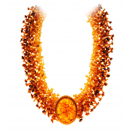 Роскошное колье из натурального янтаря и бисера 10050-1n