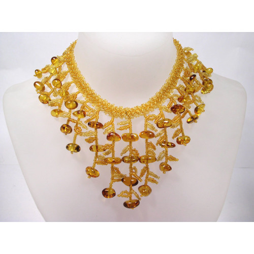 Роскошное крупное колье из натурального янтаря и бисера 10153