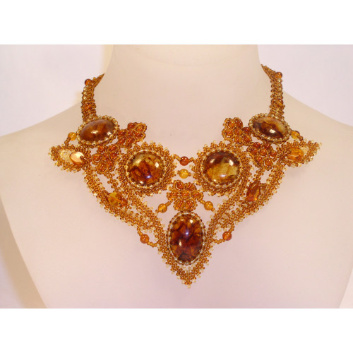 • Роскошное плетеное колье из натурального янтаря и бисера 10313