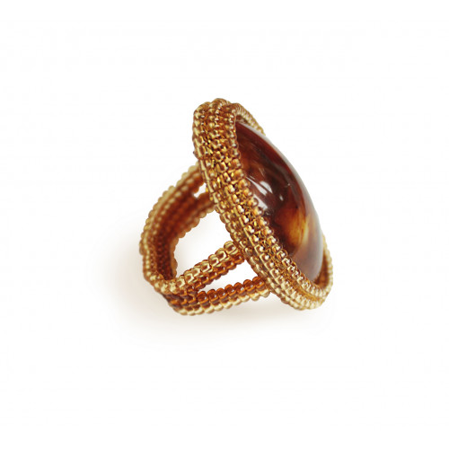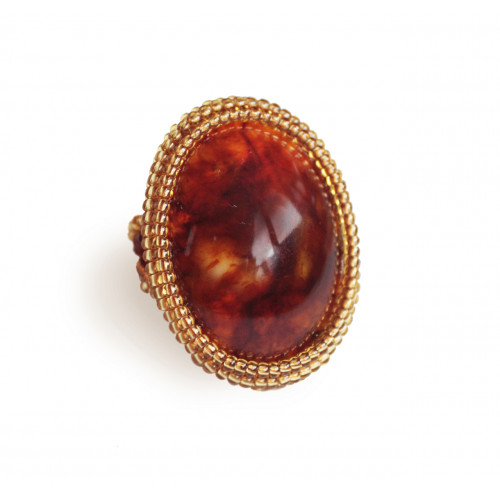 Роскошный перстень из балтийского янтаря и бисера 50691