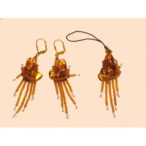 • Серьги и подвеска для мобильного телефона из  балтийского янтаря и бисера 40754-1e;40754-1sb