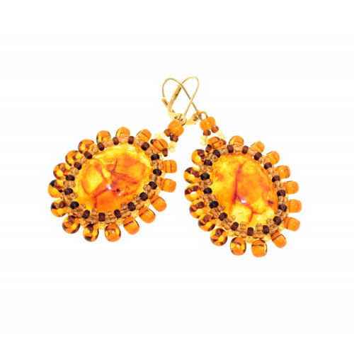 • Серьги из натурального янтаря, бисера, ювелирного сплава 40827