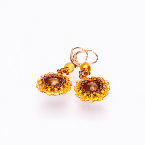 Серьги удлиненные круглые из янтаря с бисером 40872-1