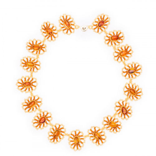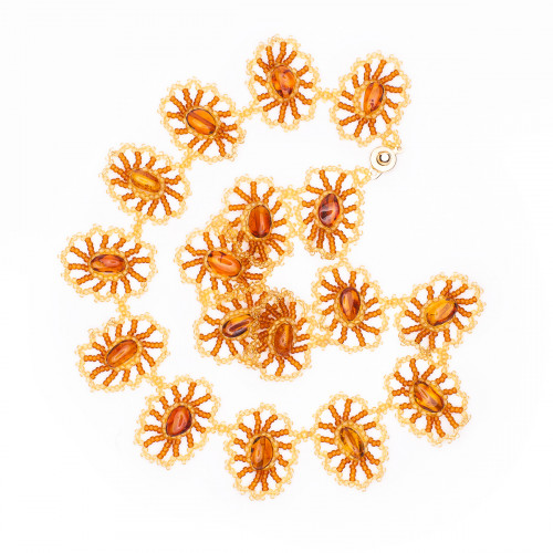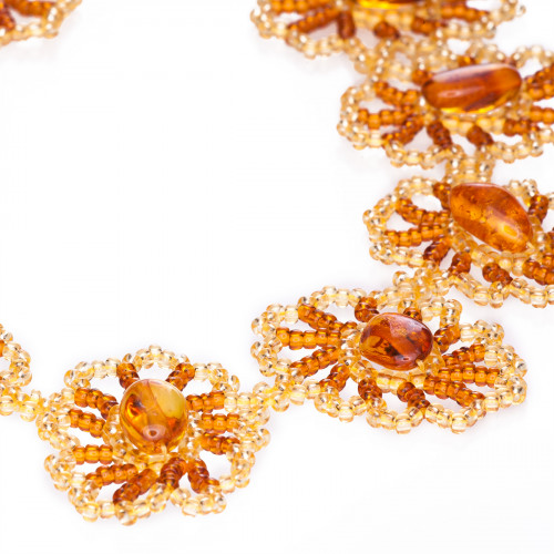 Стильное ожерелье из янтаря с бисером 11091
