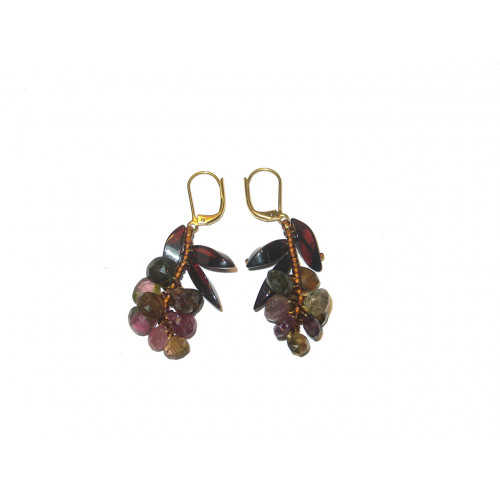 Стильные серьги из балтийского янтаря бисера и натурального турмалина 40781