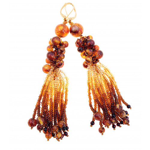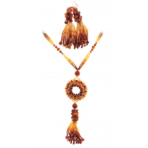 Стильный комплект из балтийского янтаря и бисера: кулон, серьги 30899, 40833