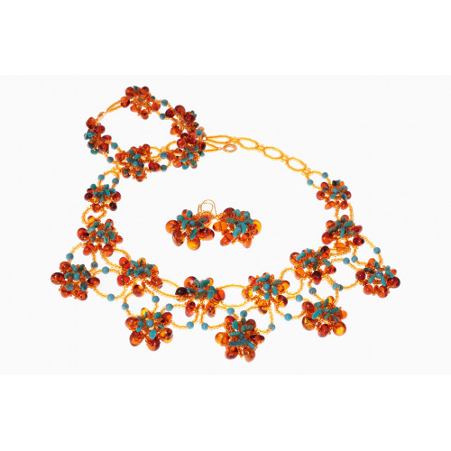 • Стильный комплект из натурального янтаря с цветами: колье, браслет, серьги 10962b,10962n,10962e