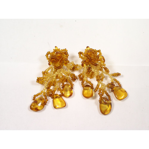 Удлиненные клипсы из балтийского янтаря и бисера 40030