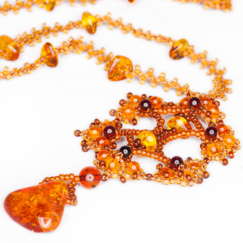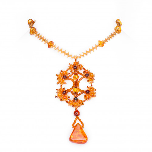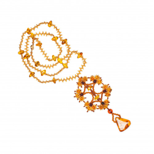 Узорчатый кулон из балтийского янтаря и бисера 30904