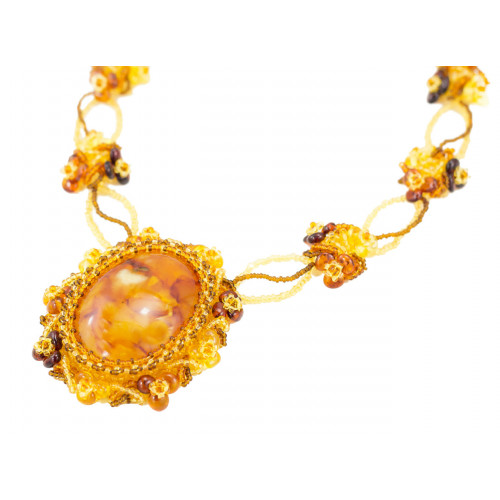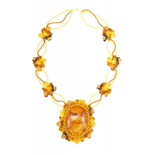 Великолепный кулон из балтийского янтаря и бисера 30927
