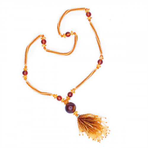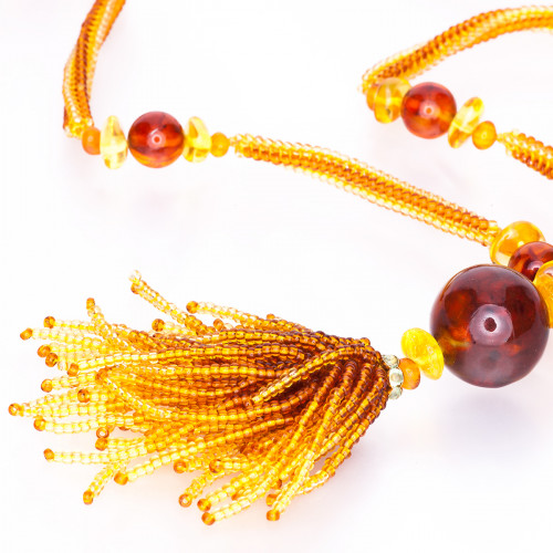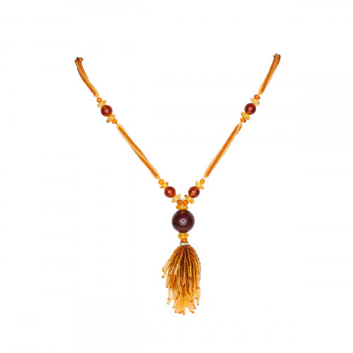 Янтарный кулон с кисточкой из бисера 30934