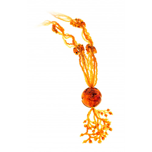 Яркий кулон из балтийского янтаря с бисером 30865-5