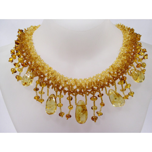 Состав: янтарь, бисер. Длина колье – 45 см. Под заказ длина может быть любой. В случае отсутствия товара на складе срок изготовления и поставки от 3 недель.