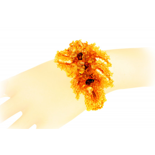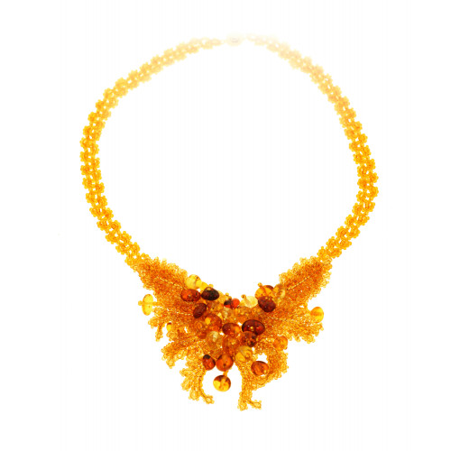 Яркое ожерелье из натурального янтаря и бисера 10993