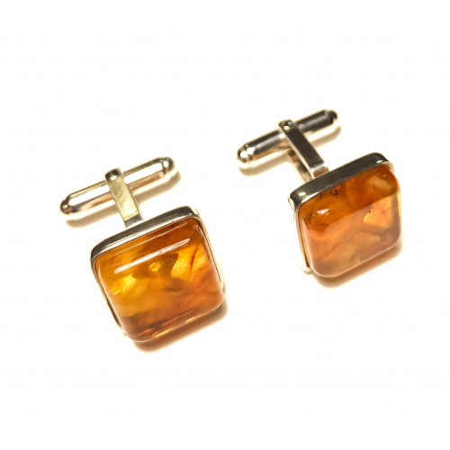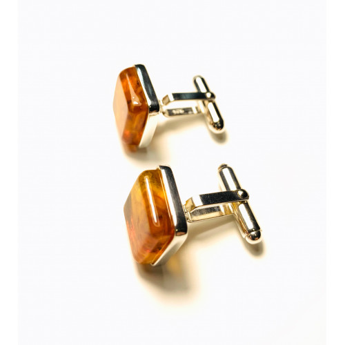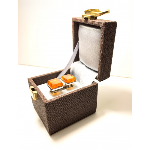 Запонки серебряные со вставками из янтаря. Поставляются в подарочном футляре.