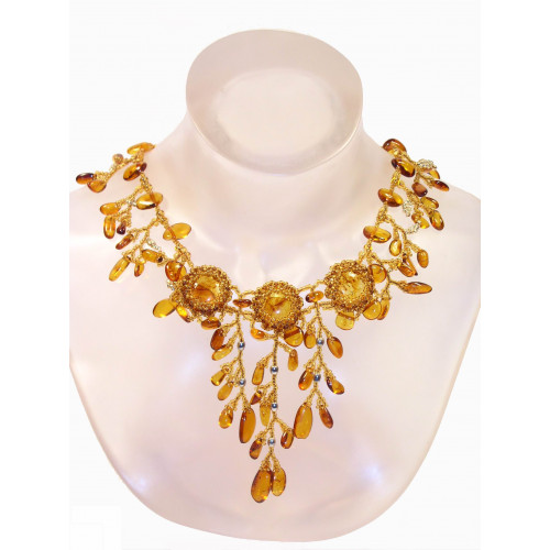 Утонченное колье из натурального янтаря и бисера 10082