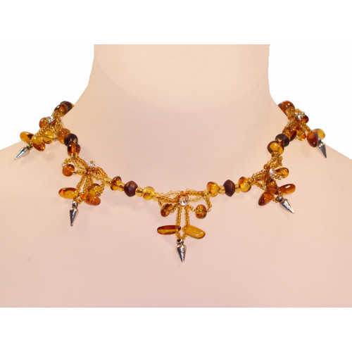 Утонченное ожерелье из натурального янтаря и бисера 10069