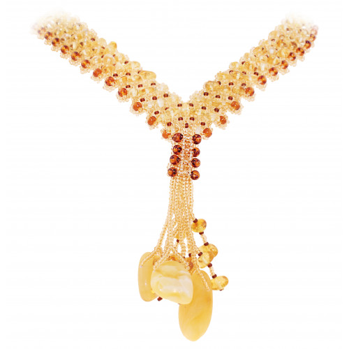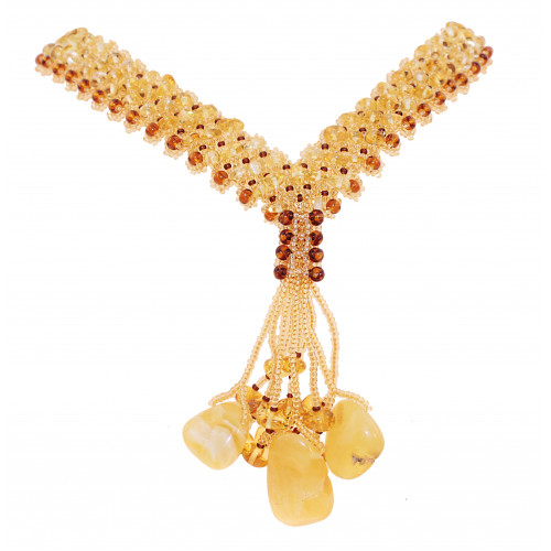 Состав: янтарь, бисер. Длина колье – 50 см. Под заказ длина может быть любой. В случае отсутствия товара на складе срок изготовления и поставки от 3 недель.