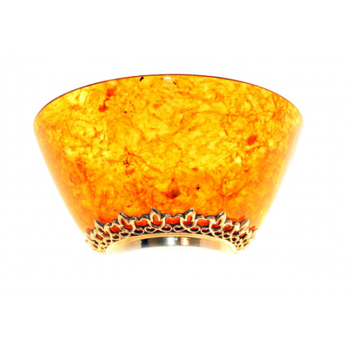 Натуральный янтарь, серебро 875 пробы . Высота - 6,5 см., Диаметр емкости - 10,5 см., Объем емкости - 180 мл.Оттенок янтаря может отличаться от оттенка на фотографии. Поставляется в подарочном футляре.